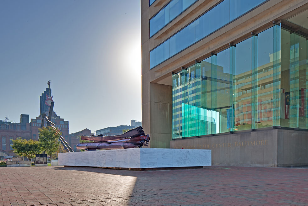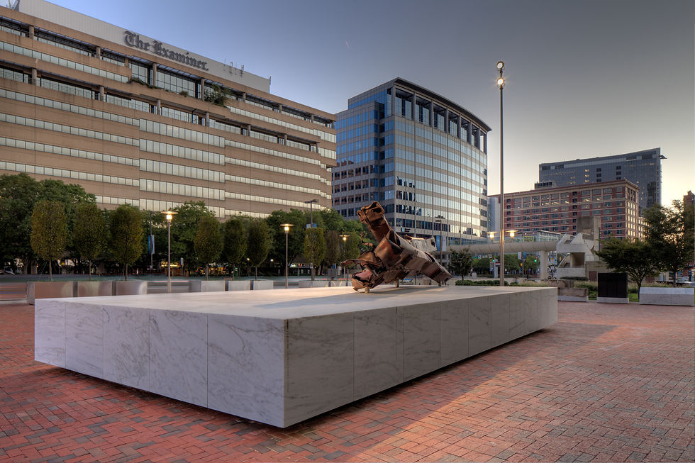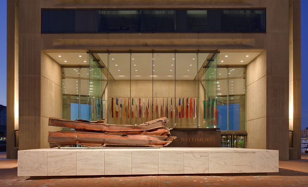 Maryland's 9/11 Memorial is located adjacent to Baltimore's World Trade Center along the Inner Harbor. The project creates a memorial plaza focused on an original artifact from the Twin Towers and is designed to honor the extraordinary heroism, commitment, and sacrifice of Maryland's 9/11 victims, rescuers and their families. The artifact, a group of three amalgamated steel beams and associated smaller steel shard, is a physical reminder of the events on September 11th. Also represented in the memorial are artifacts from the Pentagon strike as well as a rembrance to the Shanksville, PA Flight 93 strike. The memorial provides a place for contemplation, reflection and remembrance.